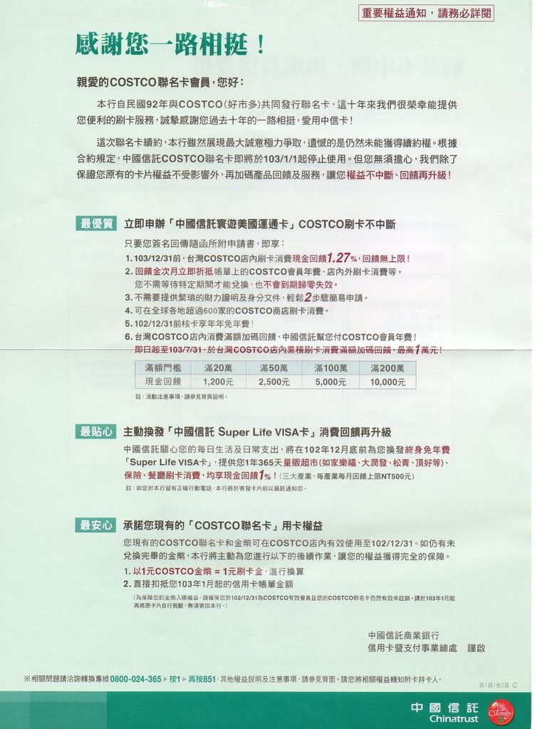 中國信託寰遊美國運通卡 Costco 店內消費現金回饋1.27% 無上限