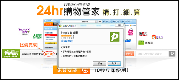 之後會來到下載《pingle省省吧》的瀏覽器外掛功能